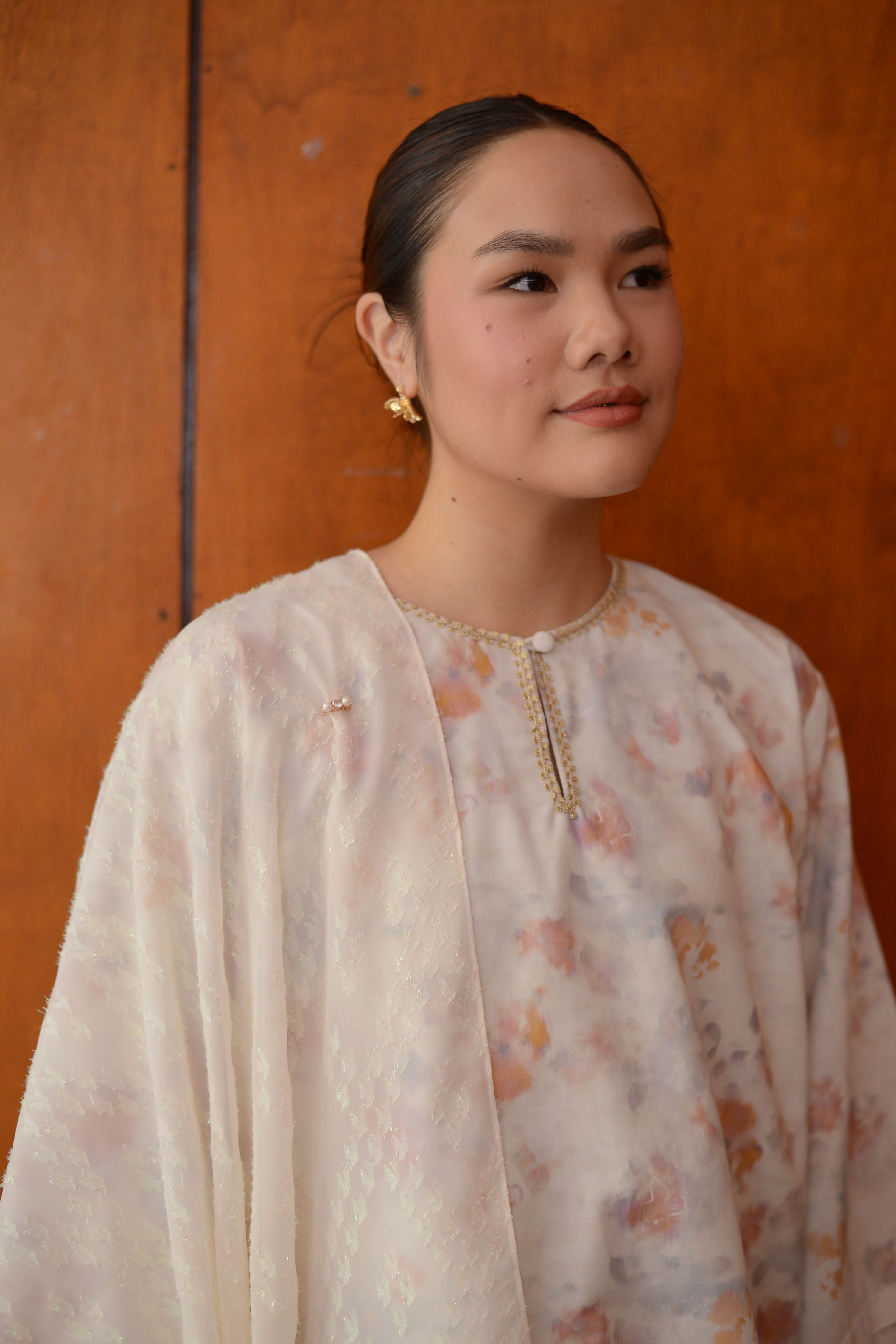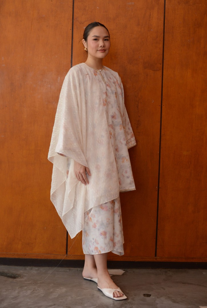 Nourin Midi Kurung captures soft femininity through delicate pastel florals and an airy, flowy midi silhouette. Designed with graceful ease, this piece drapes beautifully while offering all-day comfort.
