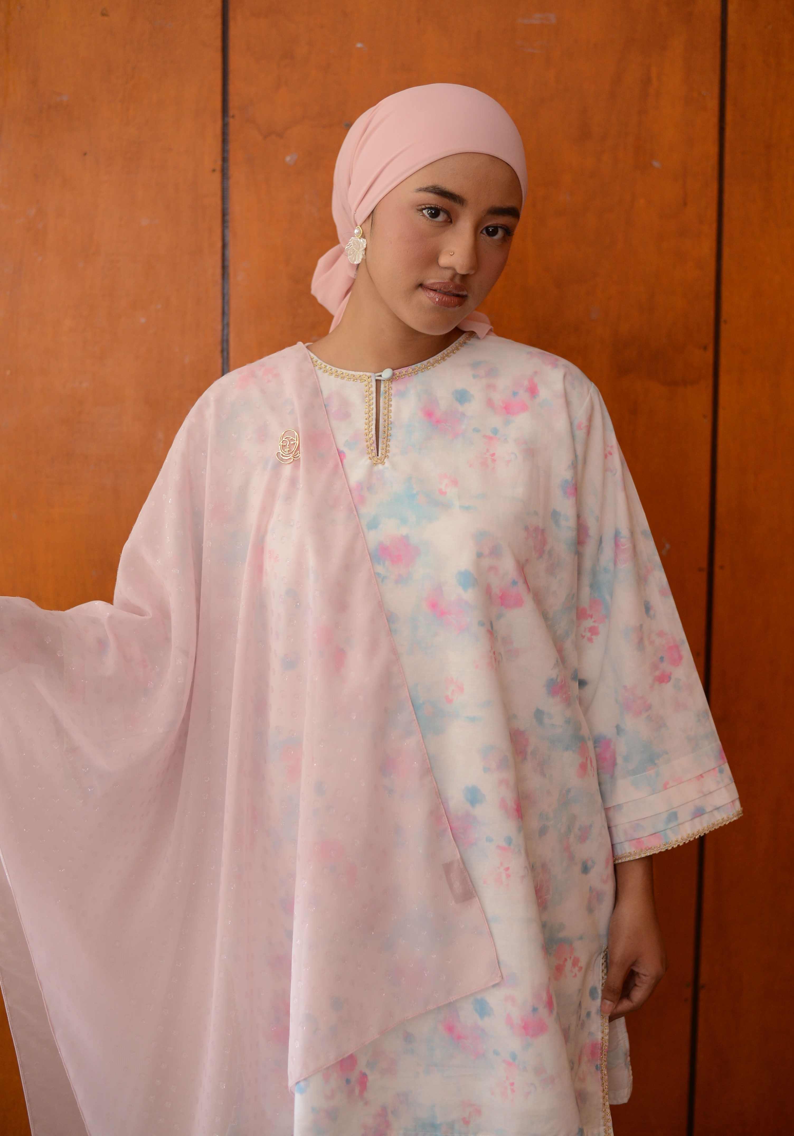 Nourin Midi Kurung captures soft femininity through delicate pastel florals and an airy, flowy midi silhouette. Designed with graceful ease, this piece drapes beautifully while offering all-day comfort.